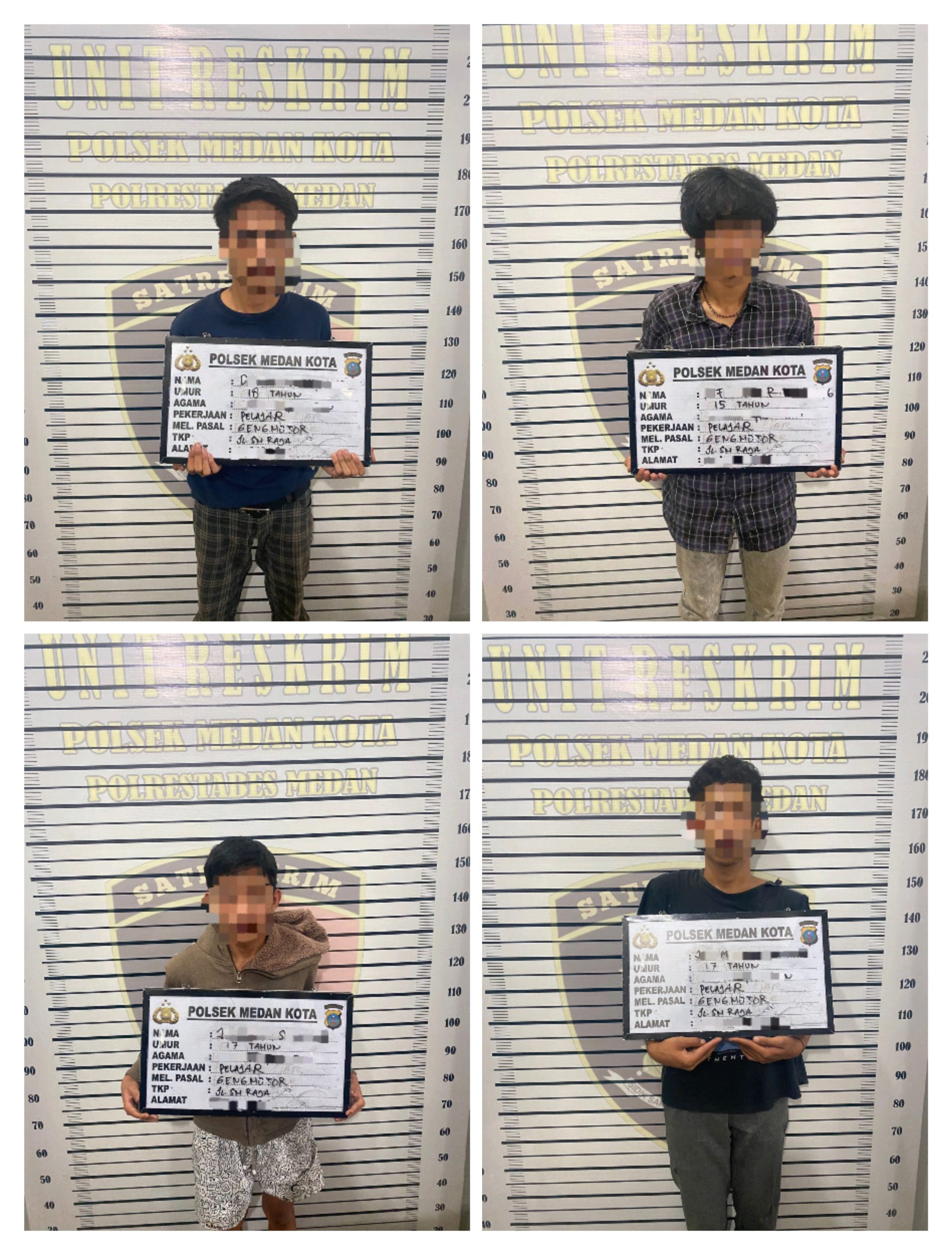 Ke empat anggota Genk Motor yang diamankan Polsek Medan Kota.(ist).
