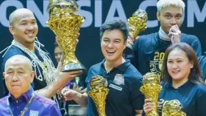 Kebahagiaannya makin lengkap karena musim ini SM Pertamina menjadi kampiun. Baim ikut merayakan kemenangan bersama para pemain.