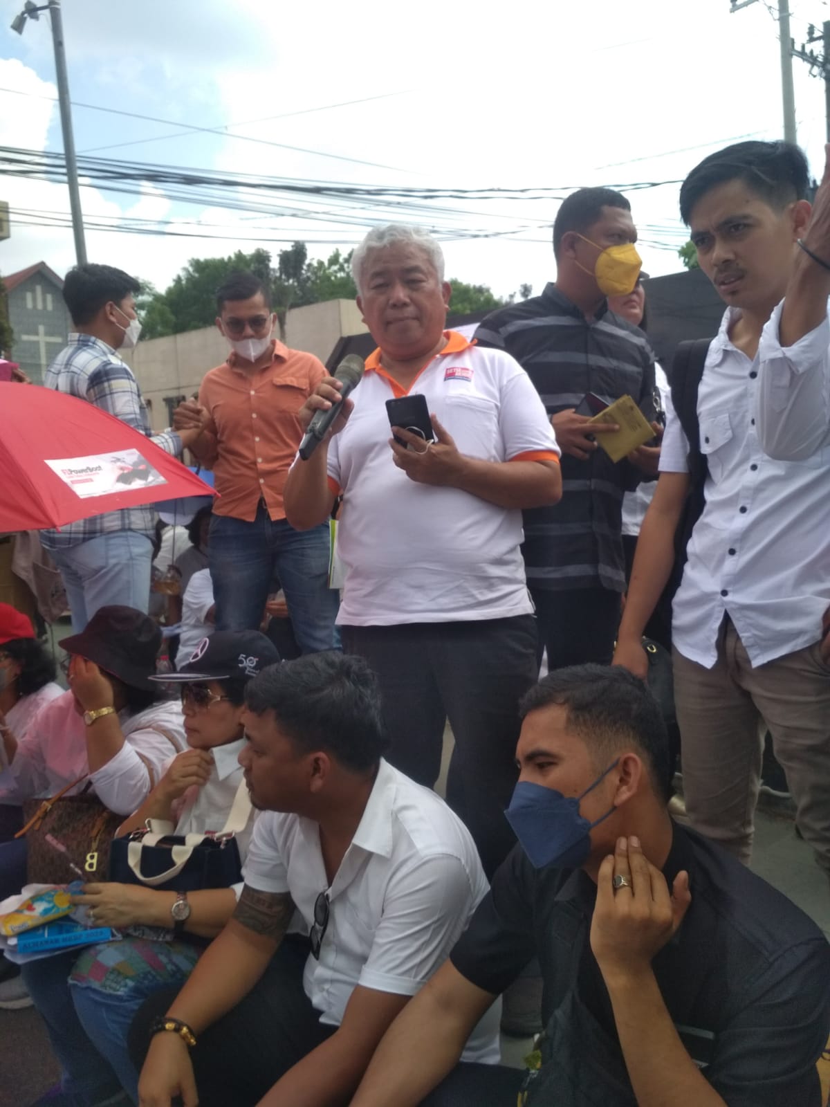 Timbul Raya Manurung, juru bicara puluhan jemaat Gereja HKBP Pabrik Tenun saat menggelar unjuk rasa di Mapolda Sumut, menyampaikan tuntutan, Senin (20/2/2023). (Ist).