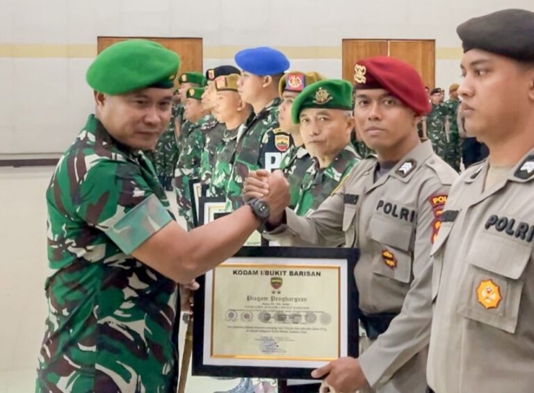Penyerahan piagam penghargaan itu sendiri diberikan Pangdam I/BB Mayjen TNI Rio Firdianto kepada lima personel Polrestabes Medan di Makodam I/BB, Jumat (17/1/2025) pagi.
