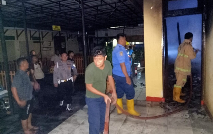 Satu ruangan di Sat Intelkam Polresta Deli Serdang terbakar, Rabu (14/8) sekitar pukul 22.15 wib.