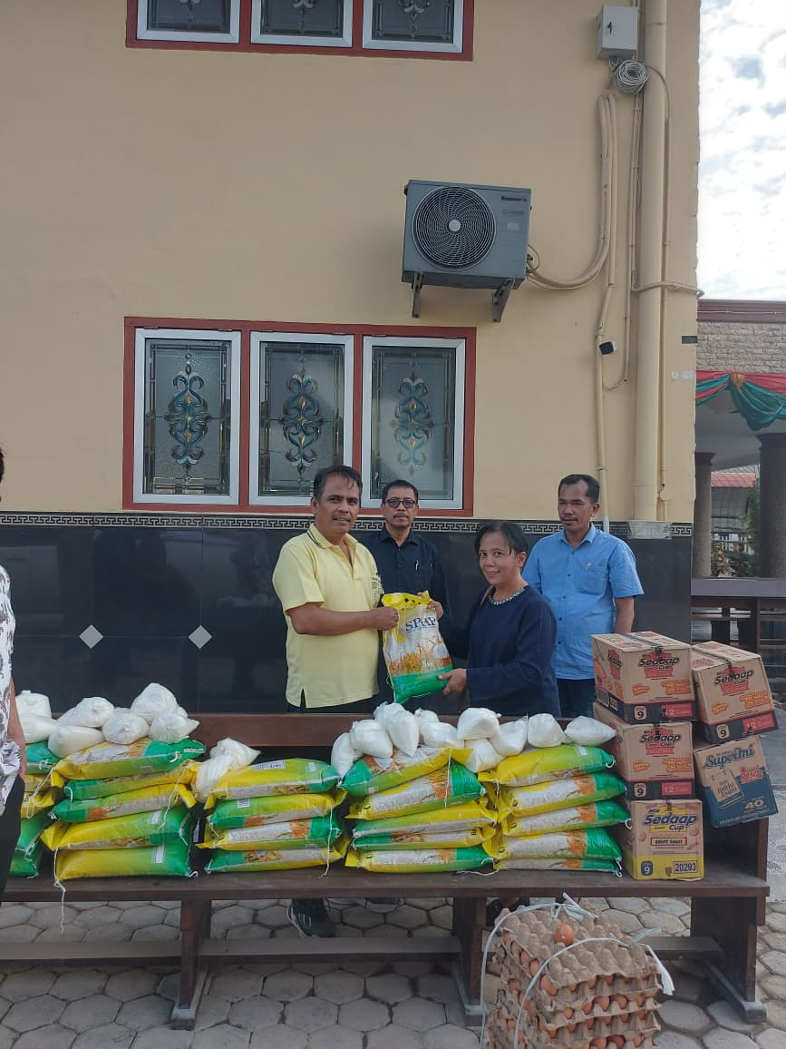 Bantuan dari Dr Maruli Siahaan diterima oleh Pdt. D.R Partukkoan Simanjuntak dan St Halomoan Siahaan untuk dibagikan kepada warga jemaat yang terdampak banjir pada tanggal 27 November 2025 lalu.