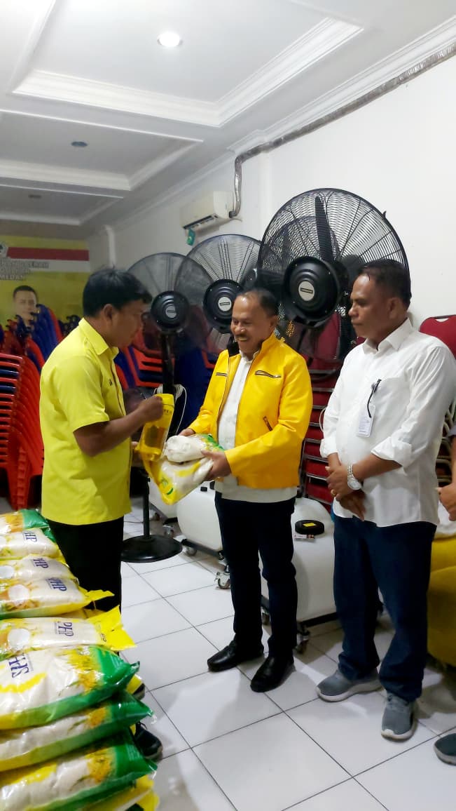 Anggota DPR RI Maruli Siahaan Berikan Sembako di Kantor DPD Partai Golkar Medan, Selasa (14/10).(ist)