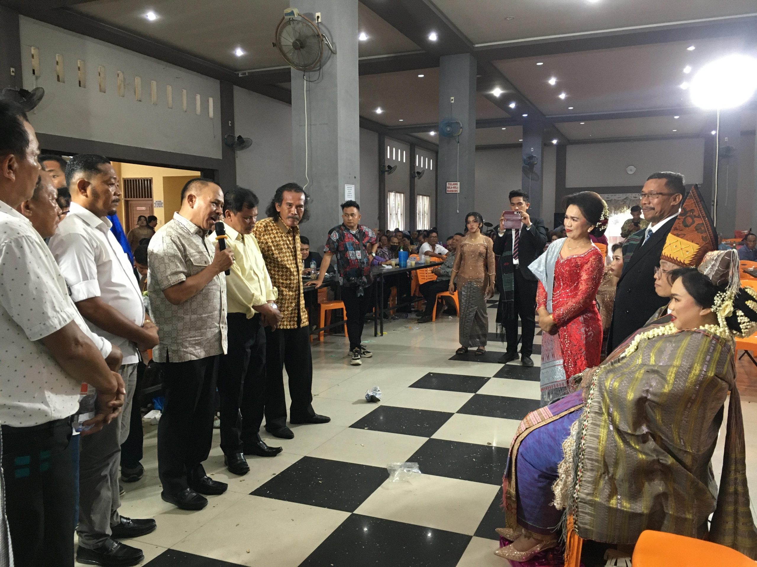 Medan, INVOCAVIT.COM: Kombes. Pol. (Purn). Dr. Maruli Siahaan, SH. MH. selaku Anggota Dewan Perwakilan Rakyat Republik Indonesia (DPR RI) Komisi XIII Fraksi Golkar Daerah Pemilihan Sumatera Utara 1 dengan didampingi Tim Rumah Aspirasi & Tim Relawan Palito Kecamatan Medan Kota menghadiri acara pesta pernikahan dan adat Yohanna Kristin G. Br. Purba,A.Md dengan Ev. Yohanes Prakoso Ginting di Gedung Balei Bolon GKPS Teladan, Teladan Barat Kota Medan, Jumat (27/3).