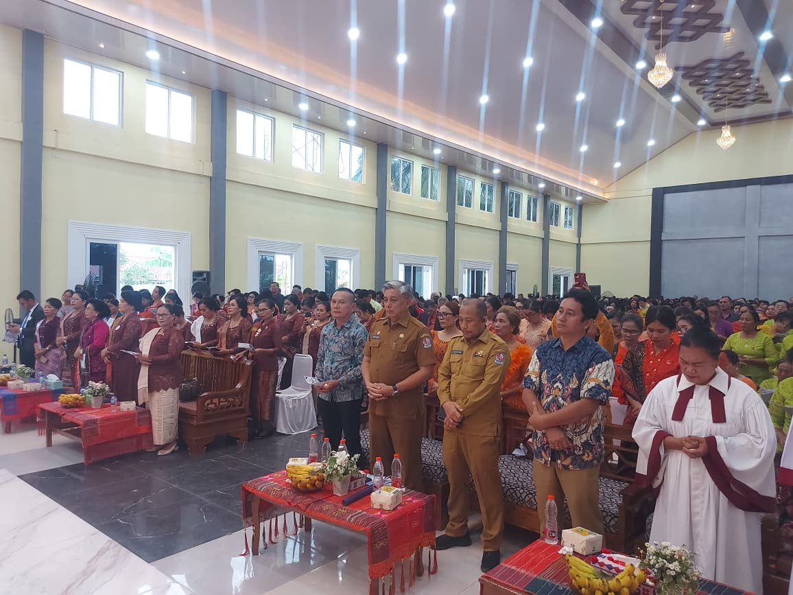 Anggota DPR RI Komisi XIII Dr Maruli Siahaan diwakili Antoni J Siahaan sampaikan selamat Natal Pesta Transpormasi HKBP Distrik XXIX Deli Serdang, Senin (8/12).(ist).