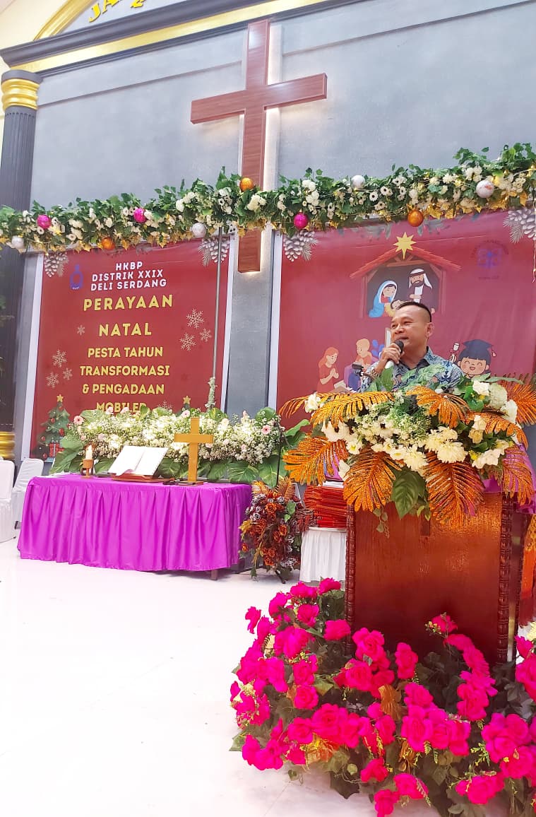 Pada kesempatan tersebut Dr. Maruli Siahaan melalui perwakilannya mengucapkan SELAMAT HARI NATAL 2025 kepada seluruh HKBP Distrik XXIX Deli Serdang yang hadir.