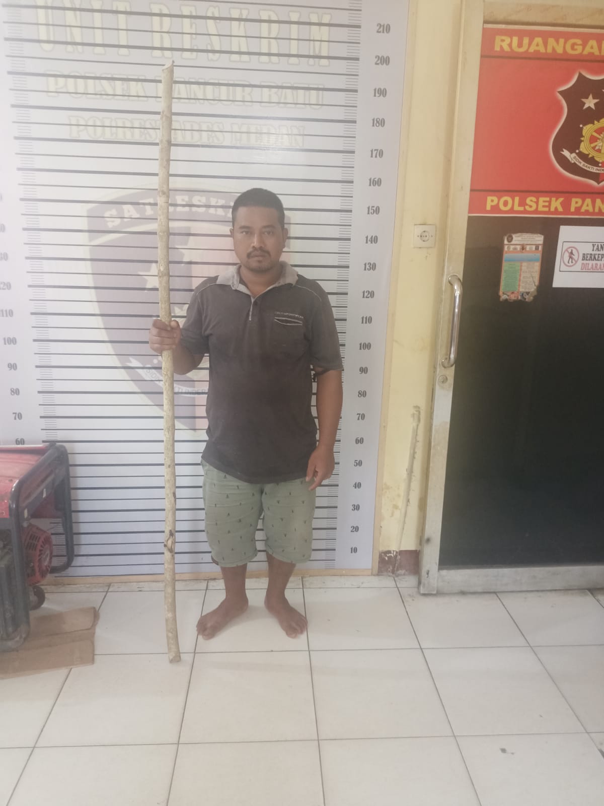 Dalam pemeriksaan, tersangka mengaku memukul kepala bagian belakang korban dengan menggunakan kayu, sehingga korban pingsan dan dilarikan ke RSU Pancur Batu.