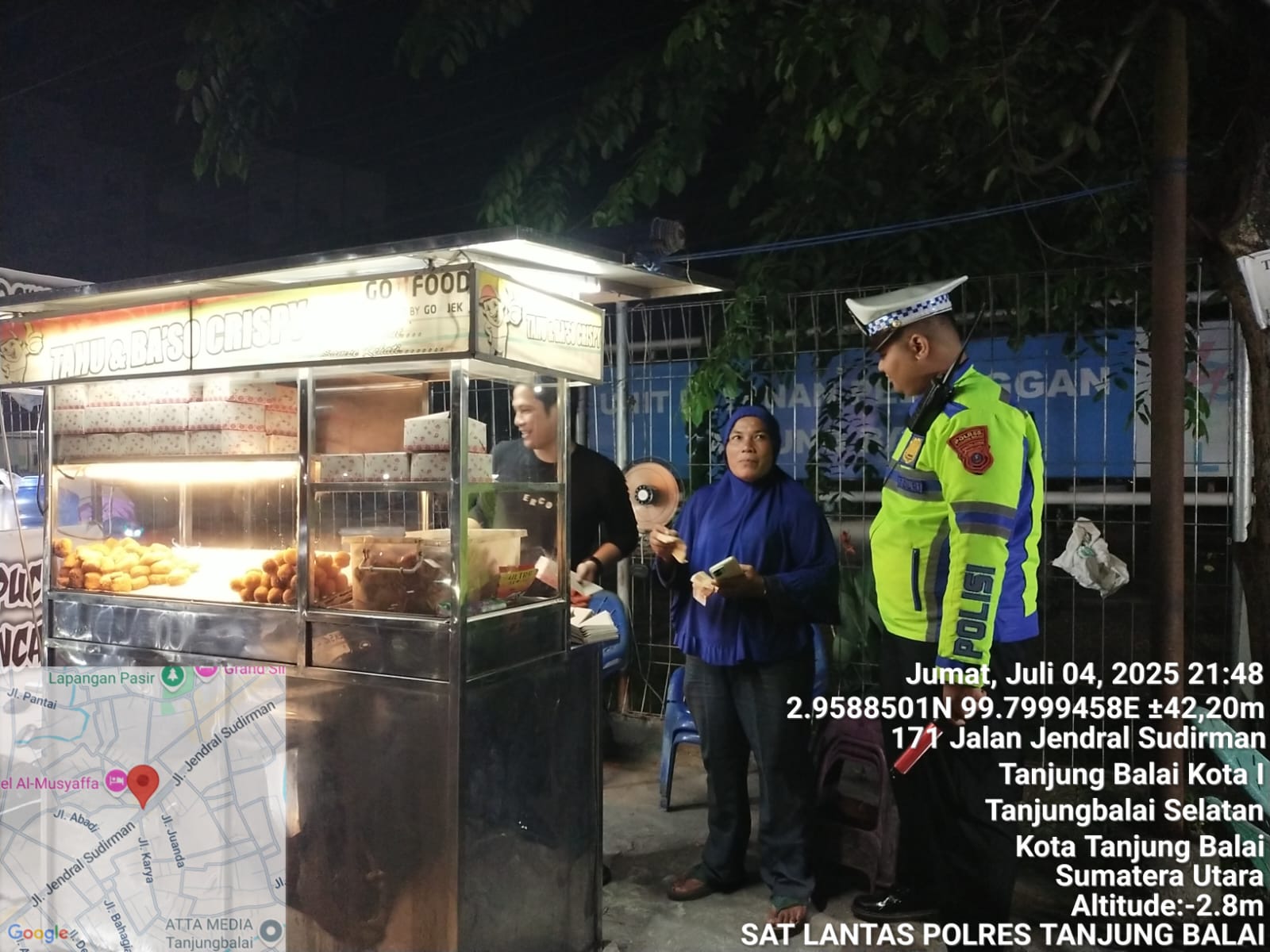TANJUNGBALAI,INVOCAVIT.COM- Untuk mengantisipasi kemacetan di kawasan kuliner malam, jajaran Satlantas Polres Tanjung Balai turun langsung ke lapangan. Polisi memberikan imbauan kepada para pedagang agar menata lapak dagangannya dengan tertib dan tidak mengganggu arus lalu lintas.