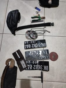 Masih kata mantan Kapolsek Helvetia itu, melihat itu, anggota kami dengan Sigap mengejar dan berhasil menangkap kedua pemuda tersebut. Saat dilakukan penggeledahan ditemukan sepasang Kunci Leter T, Kunci L dan 2 Plat Nomor Kendaraan.