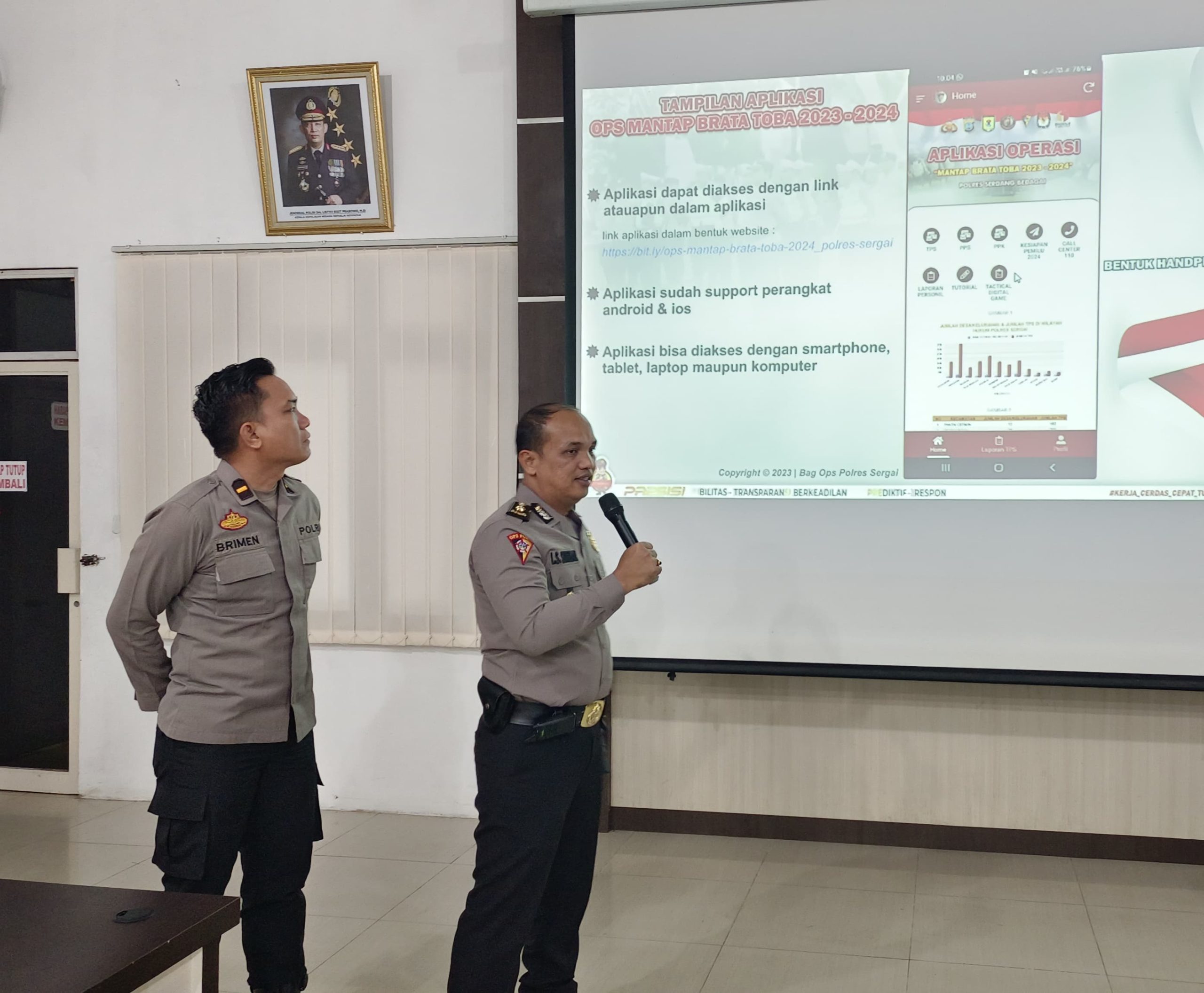 “Kita bersyukur dengan perkembangan tehnologi sangat membantu pengamanan Pemilu dengan adanya aplikasi SOT untuk Polri secara umum kemudian kita berinovasi aplikasi siap untuk personel Polres Sergai.”terangnya.