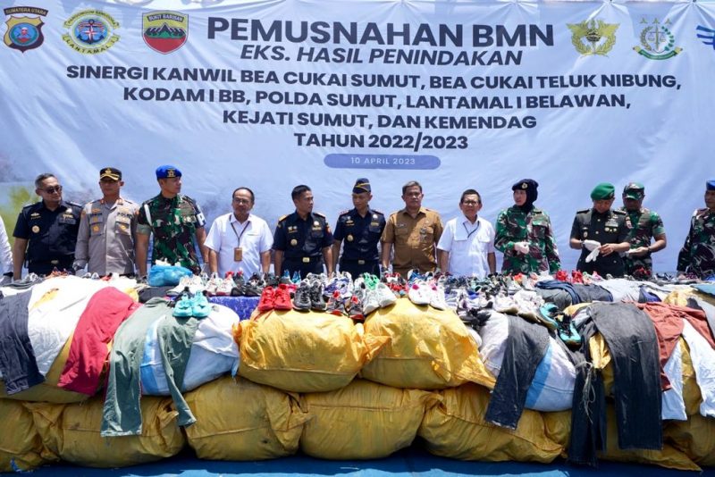 Kepala Kantor Wilayah Direktorat Jenderal Bea Cukai Sumatera Utara (Sumut), melakukan pemusnahan barang bekas di Belawan, Senin (10/4/2023).