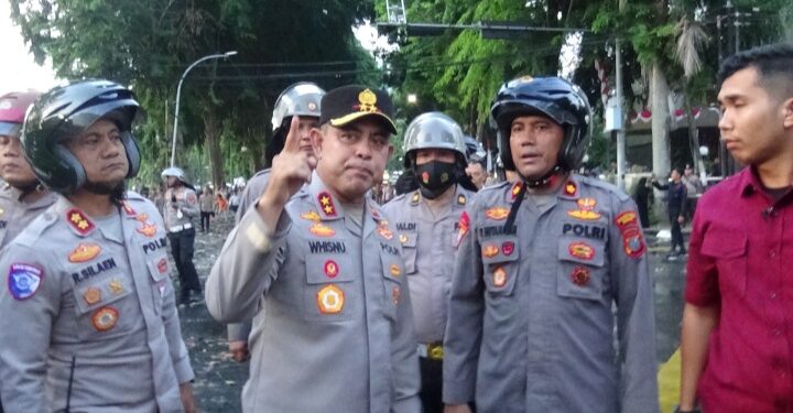 Kapolda Sumut Irjen Whisnu Hermawan Februanto saat berada dilokasi demo, depan gedung DPRDSU Jl.Ima Bonjol Medan.(ist).