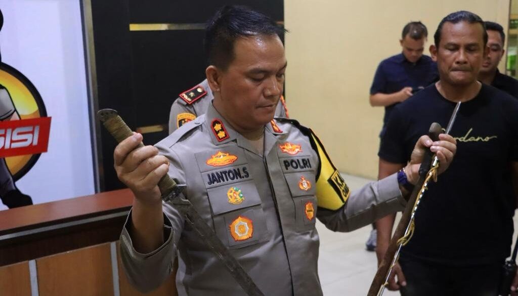 Dari lokasi kejadian, polisi berhasil mengamankan tiga senjata tajam yang ditinggalkan oleh para pelaku. Upaya pengejaran terhadap terduga pelaku juga sedang dilakukan.