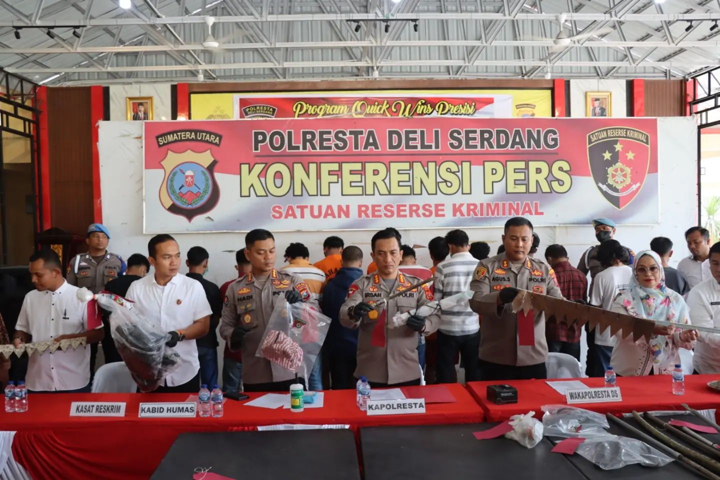Turut hadir dalam konferensi pers ini, Wakapolresta AKBP. Agus, Kasat Reskrim, Kompol. I kadek, dan Kapolsek Tanjung Morawa, AKP. Firdaus Kemit.