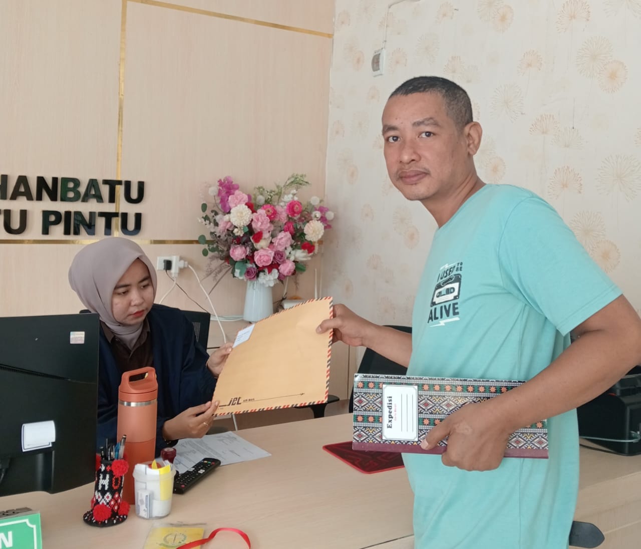 Abi Ridwan,SH saat menyerahkan laporannya ke PTSP kejaksaan Negeri Labuhanbatu.(ist)