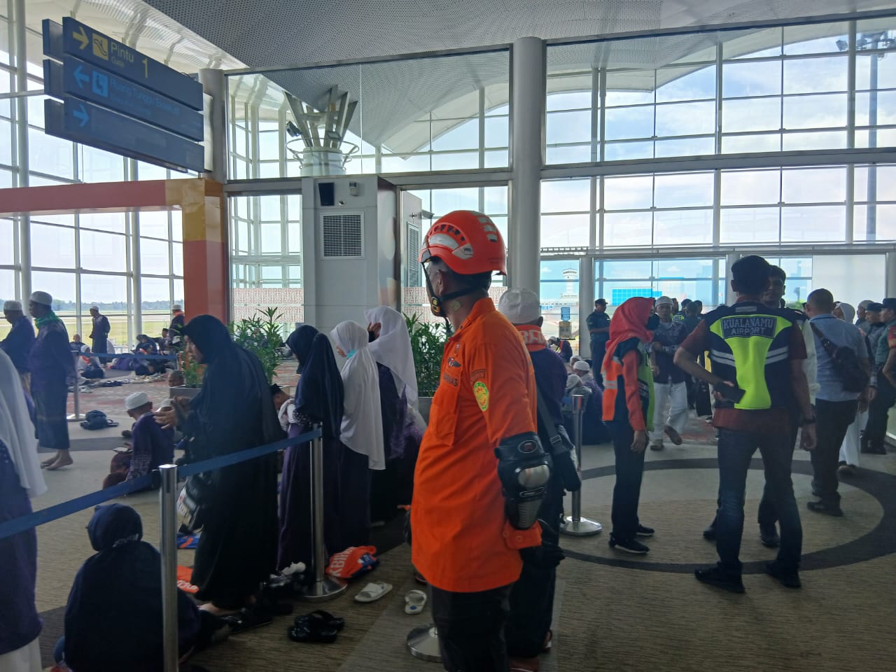 Kata Nugroho, seluruh penumpang dievakuasi dan menjalani screening di terminal kedatangan Kualanamu. Itu dilakukan sebagai bentuk kesiapsiagaan, Emergency Operation Center (EOC) Bandara Internasional Kualanamu telah diaktifkan dengan melibatkan unsur Komite Keamanan Bandar Udara.
