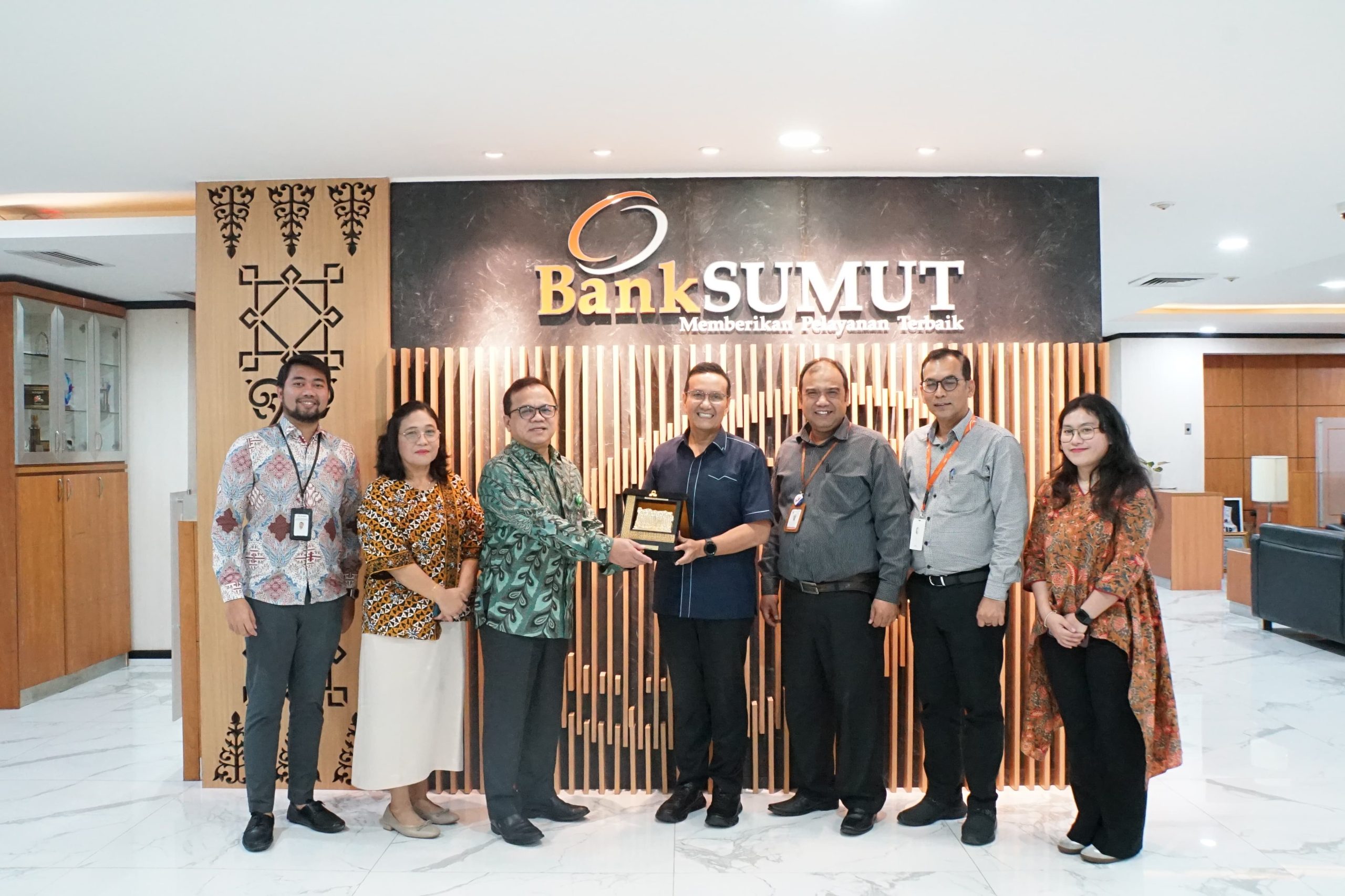 Deputi Komisioner Bidang Hukum dan Administrasi BP Tapera, Willson Lie Simatupang dan rombongan foto bersama Direktur Bisnis dan Syariah Bank Sumut, Syafrizalsyah dalam salah satu kunjungan ke kantor pusat Bank Sumut Jalan Imam Bonjol, Medan.(ist).