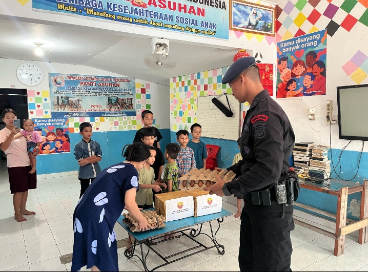 MEDAN, INVOCAVIT.COM— Wujud nyata kepedulian terhadap sesama kembali ditunjukkan oleh Satuan Brimob Polda Sumatera Utara. Dalam rangka program “Minggu Kasih”, sebanyak 8 personel Batalyon A Pelopor yang dipimpin langsung oleh Danton 4 Kompi 1 Batalyon A Pelopor, IPDA Setia Yudi, S.H., melaksanakan kegiatan Bakti Sosial bertajuk “Peduli Sesama” dengan menyasar masyarakat kurang mampu dan anak-anak panti asuhan di wilayah Kota Medan.