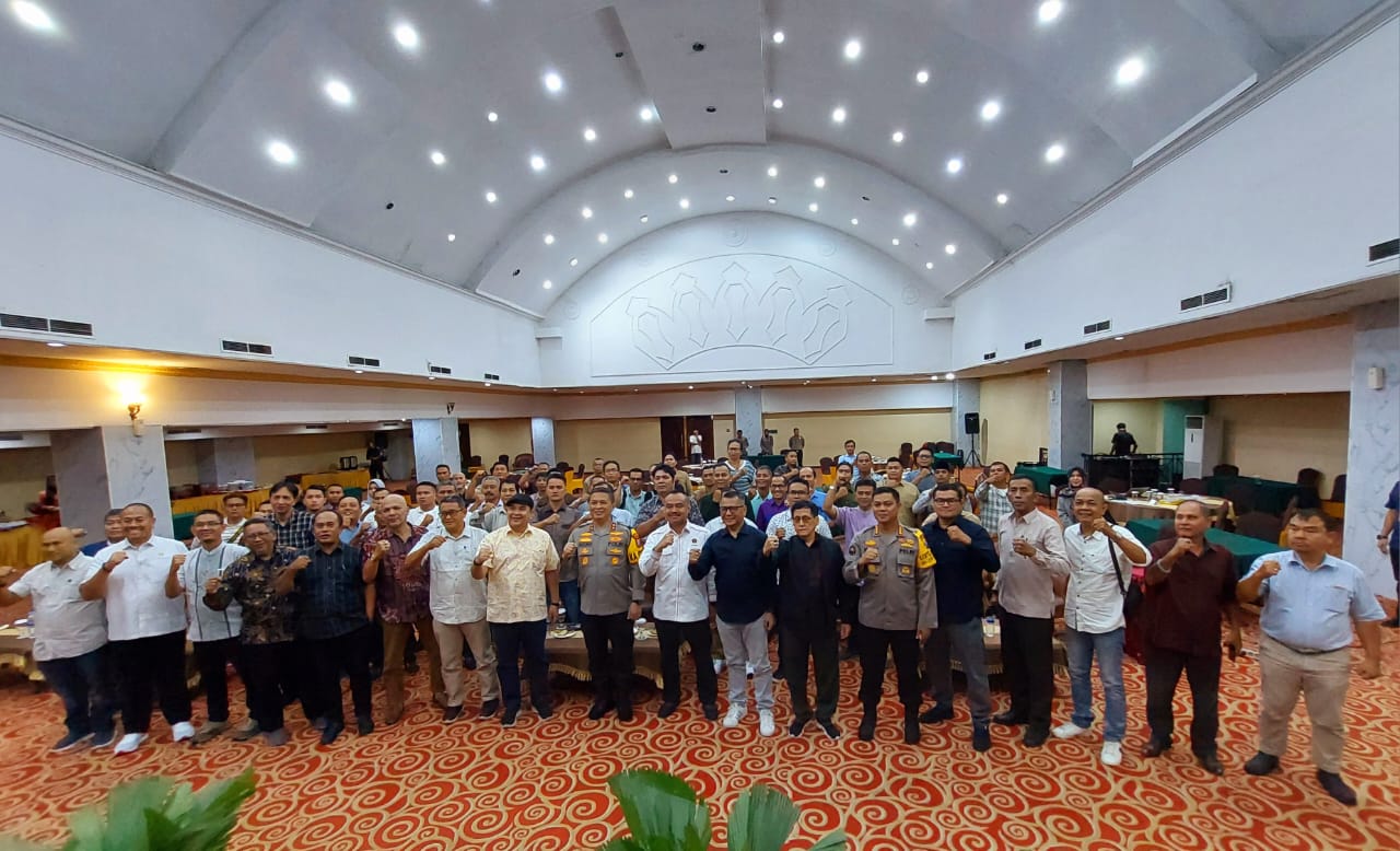 Kapolda Sumut Irjen Agung Setya Imam Effendi M.Si Poto bersama dengan tim penguji dan peserta usai membuka UKW PWI Sumut Angkatan 66 dn 67 di Hotel Madani Medan, Jumat (22/12).(ist).