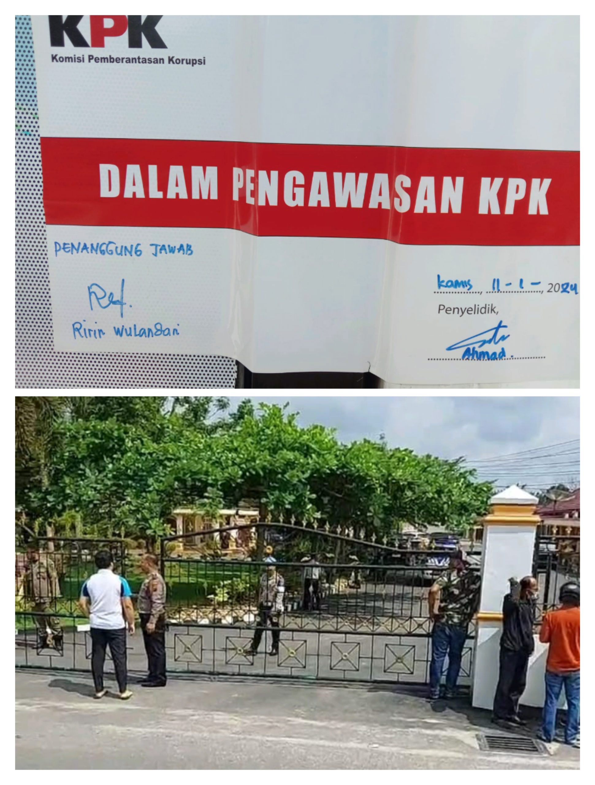 Sejumlah warga saat menyaksikan Tim KPK mendatangi rumah Pribadi Bupati Labuhanbatu dan yang kemudian dipasang tulisan “Dalam Pengawasan KPK diruangan Plt Kadiskes serta Kadis PUPR”.(Abie).