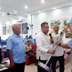 Ketua PWI Sumut H Farianda Putra Sinik menyerahkan pataka kepada Saufi Satria