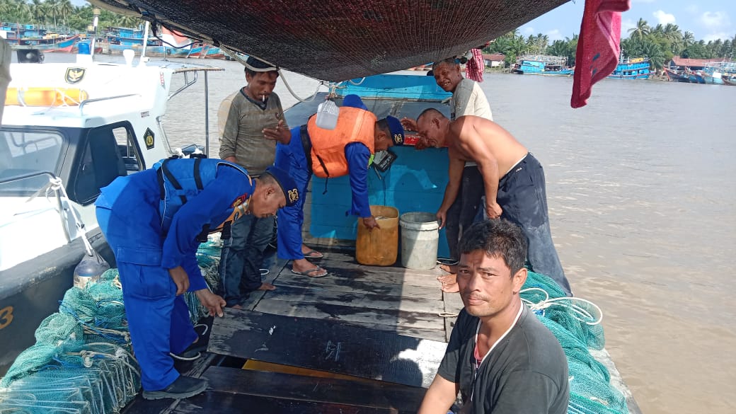 Tampak dari foto Personel Sat Polairud Polres Tanjungbalai sedang memeriksa satu unit Boat Nelayan.(Anafisham)