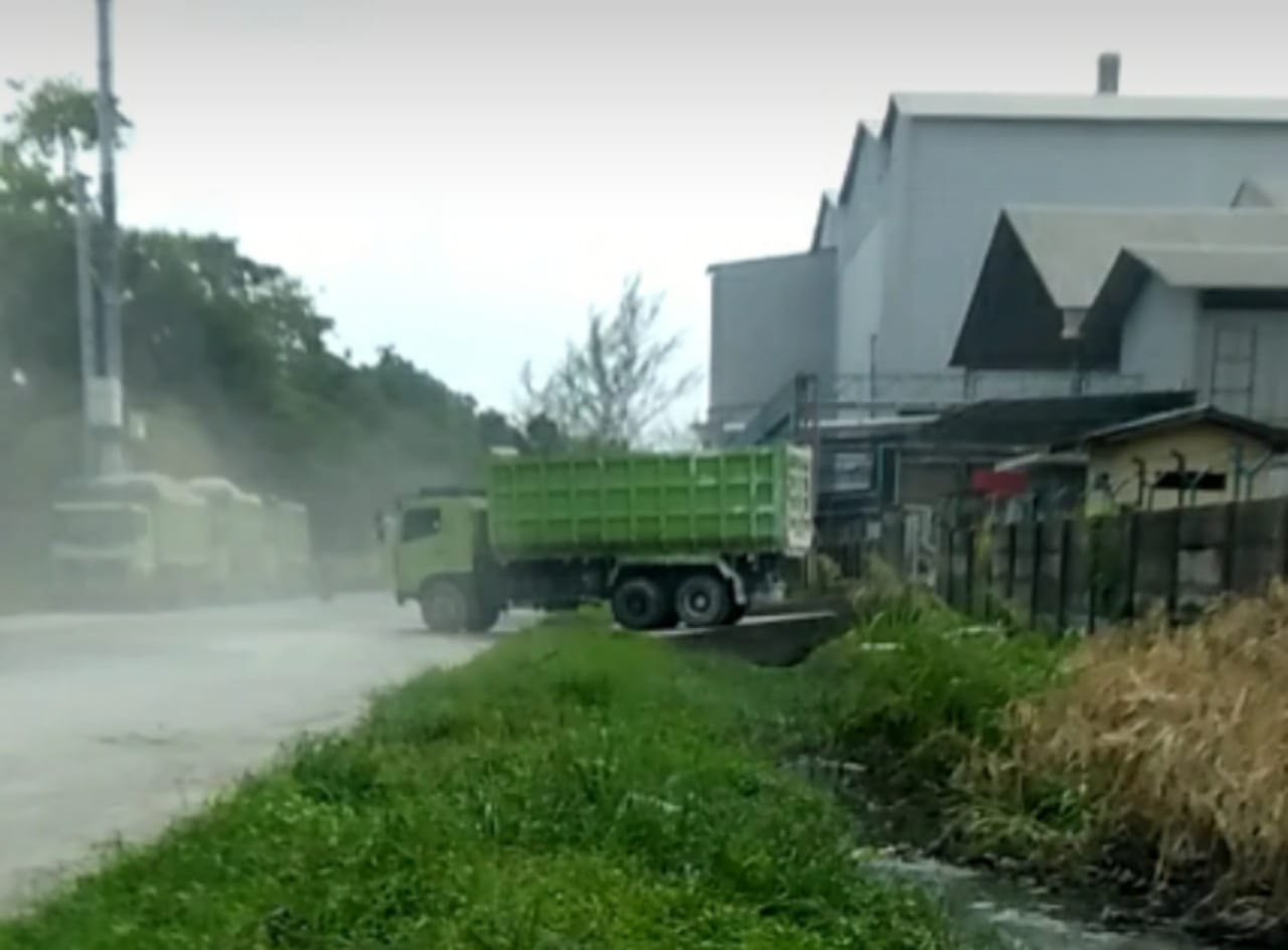 Truk tronton setelah Membongkar muatan tanah kaolin keluar dari PT Jui Shin Indonesia di KIM 2 Medan.(ist)
