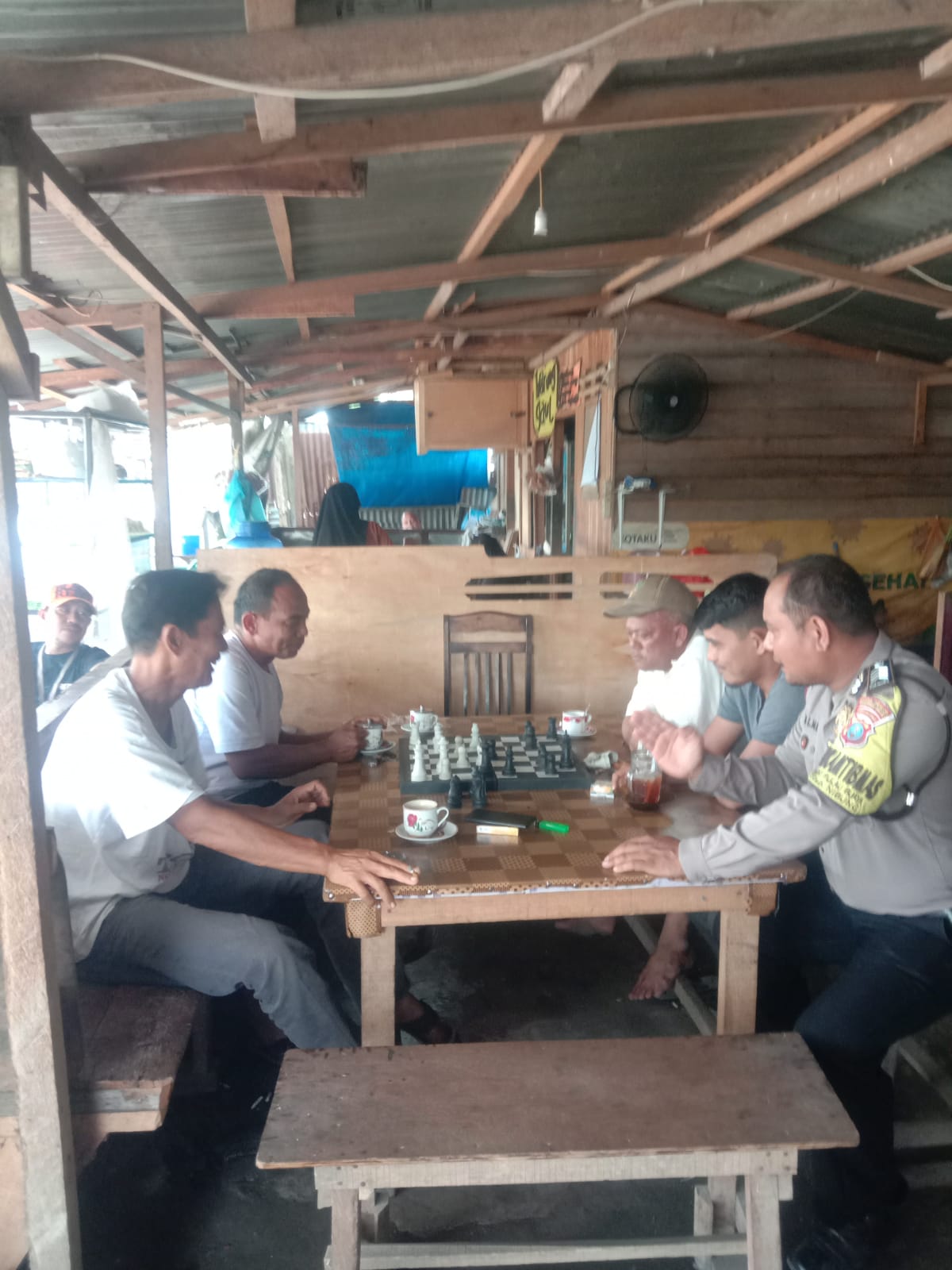 Dengan humanis Personel Polsek Teluk Nibung Polres Tanjungbalai sambangi warga sedang bermain catur.(ist)