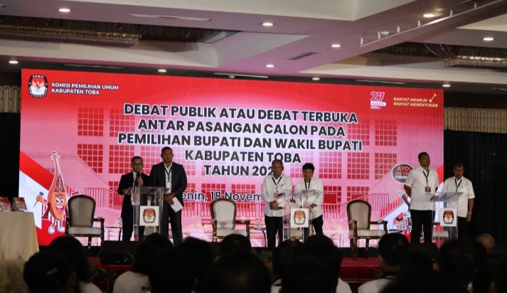 Dr. Agustinus menambahkan bahwa debat ini membahas isu-isu strategis dan aktual yang menjadi fokus perhatian Pemerintah Kabupaten Toba, di antaranya pengembangan sektor pariwisata, penanganan kemiskinan, stunting, infrastruktur jalan dan irigasi, persoalan tanah ulayat masyarakat adat, pengelolaan keramba jaring apung, hingga strategi pengelolaan anggaran daerah.