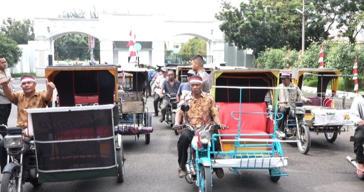 Sebanyak 6.000 abang Becak yang tergabung dikeluarga besar Betor Sumut Sejahtera (BSS) deklarasikan diri siap jaga kondusifitas pada Pemilihan Umum (Pemilu) 2024.