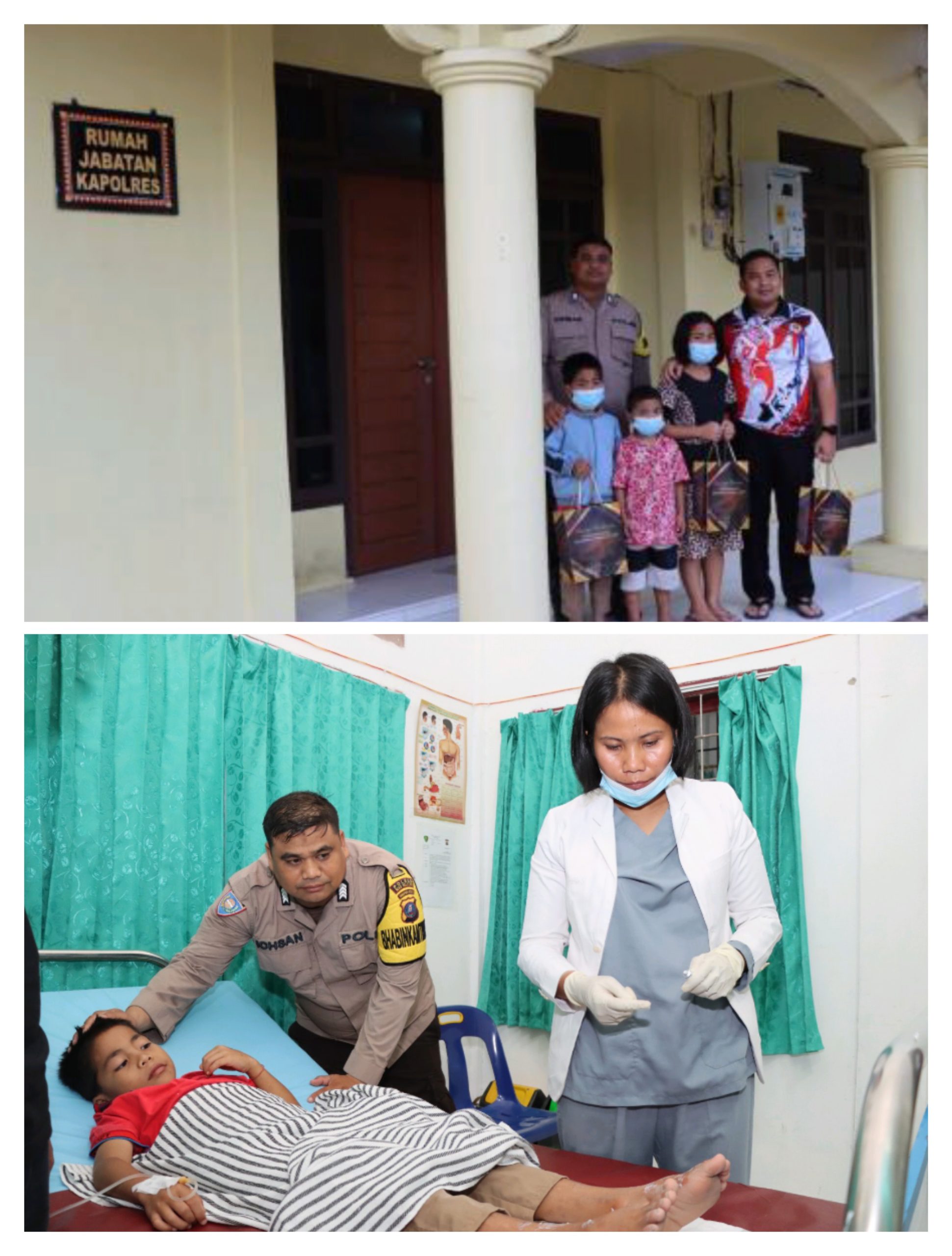Kapolres Nias Selatan AKBP Reinhard Nainggolan membawa anak terdakwa berobat.(ist).