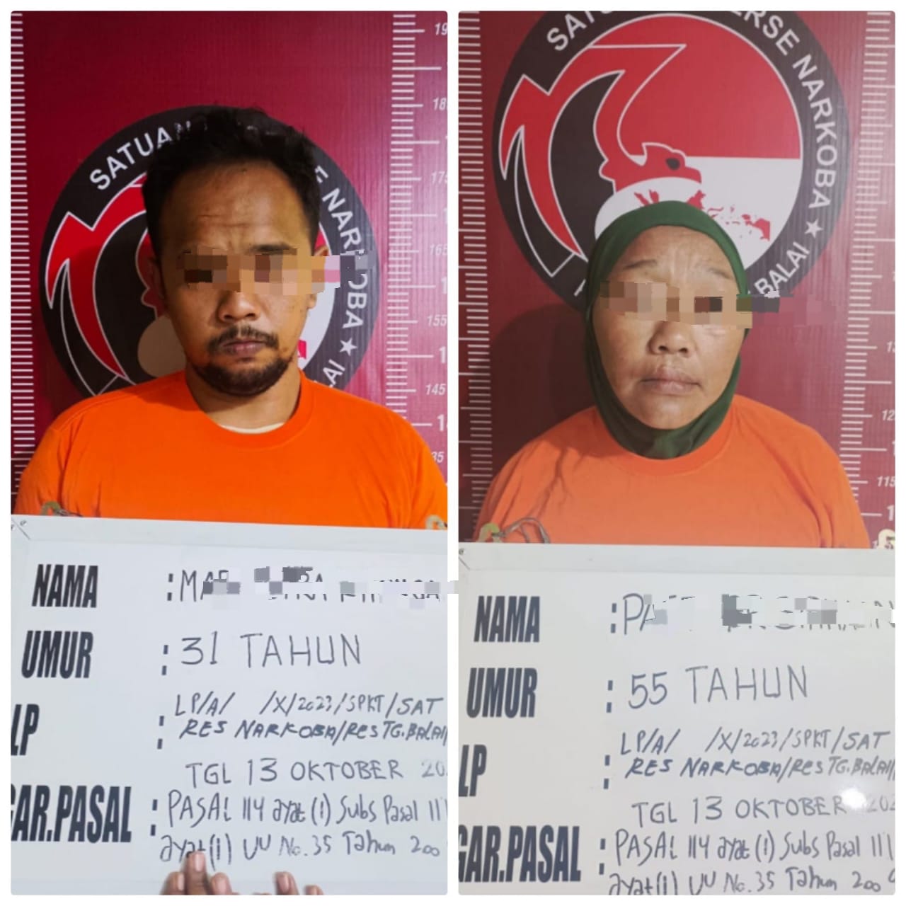 Ibu dan anak inisial, PS (55) dan anaknya MRP (31) digulung Satres narkoba Jumat (13/10/23) sekira pukul 17.15 Wib di Jl.Aman Lk.V Kel.Sejahtera Kec.Tanjung Balai Utara Kota Tanjung Balai.
