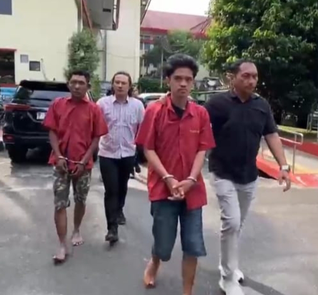 Kedua tersangka digiring petugas di Mapoldasu, Selasa (4/11).(ist)