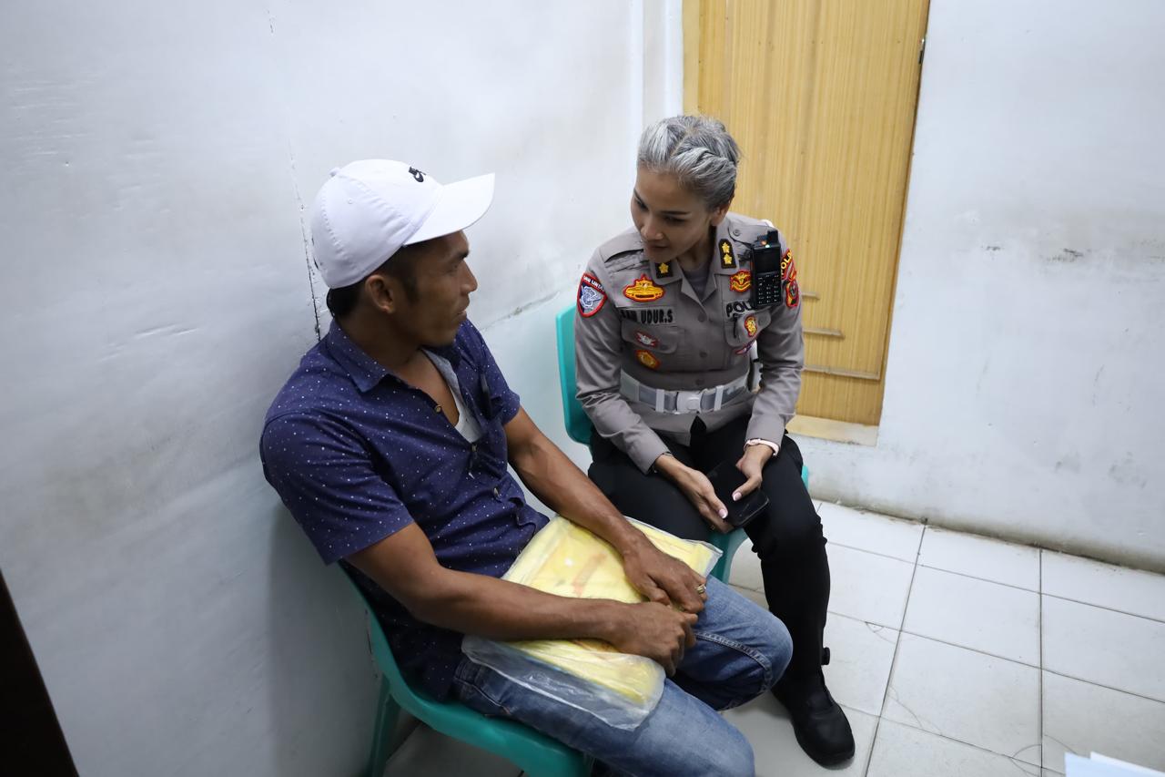 Kasubdit Regident Ditlantas Polda Sumut AKBP Sah Udur Sitinjak S.IK.SH.MH melakukan wawancara dengan seorang warga yang mengurus SIM di Satpas Polresta Deli Serdang.(ist).