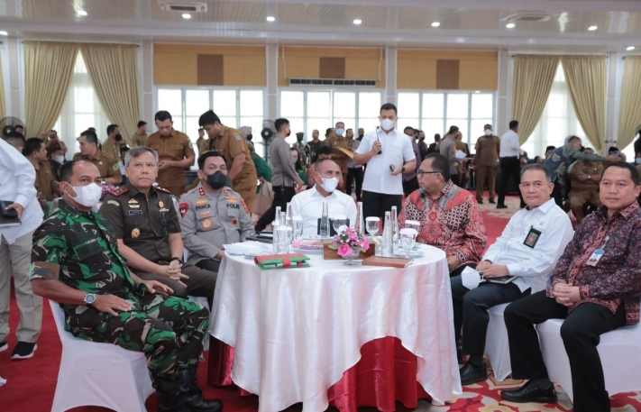 Selanjutnya penyampaian Gubernur Sumut terkait kondisi terkini di wilayah Sumut dimana Forkopimda Sumut melaksanakan pemantauan harga barang di wilayah Sumut agar tetap stabil serta langkah-langkah yang diambil untuk mengantisipasi jika terjadi inflasi