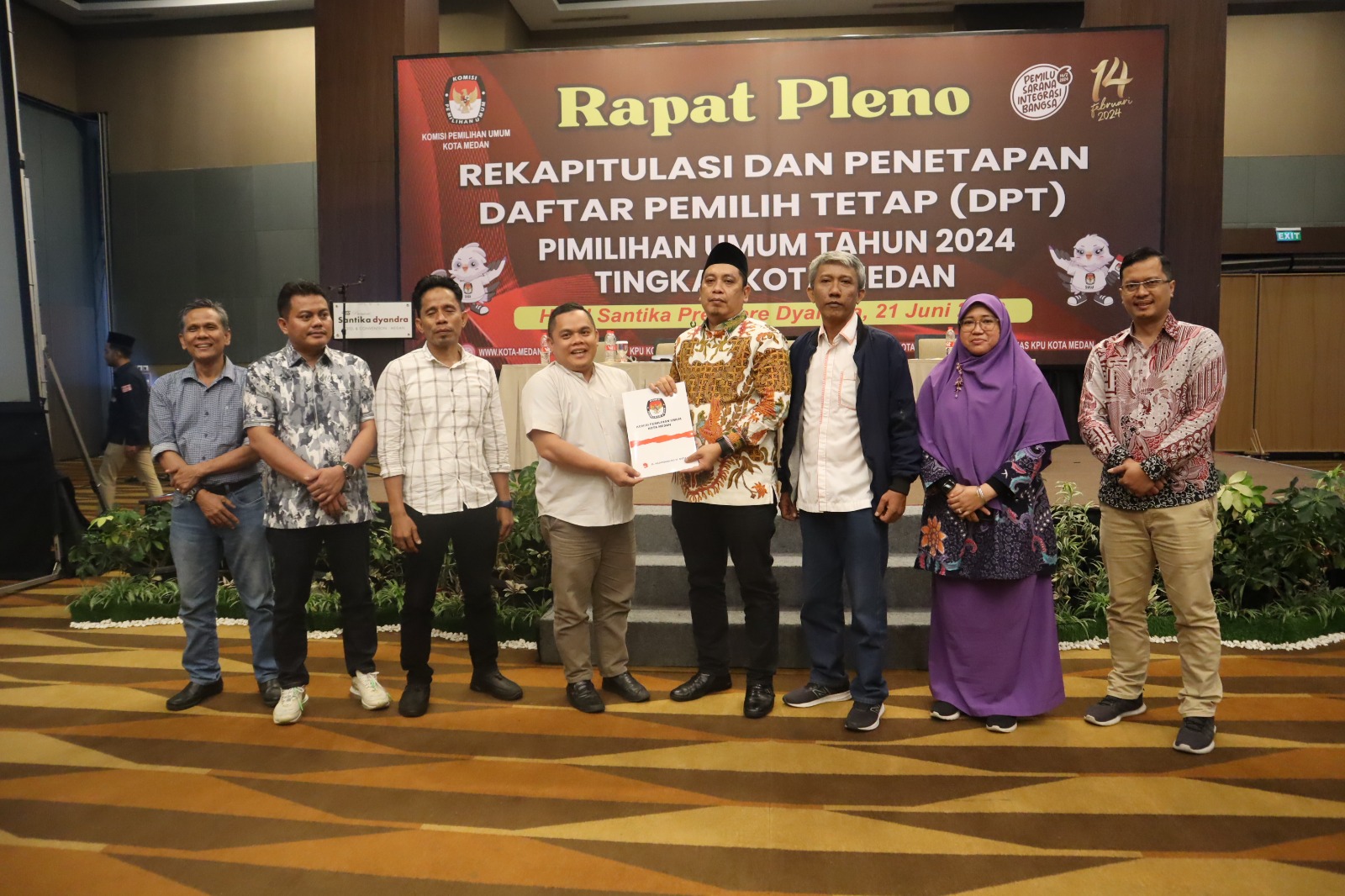 Penetapan DPT itu dilakukan melalui Rapat Pleno Rekapitulasi DPT yang dilaksanakan oleh Komisi Pemilihan Umum (KPU) Kota Medan di Hotel Santika Dyandra, Rabu (21/6/2023).