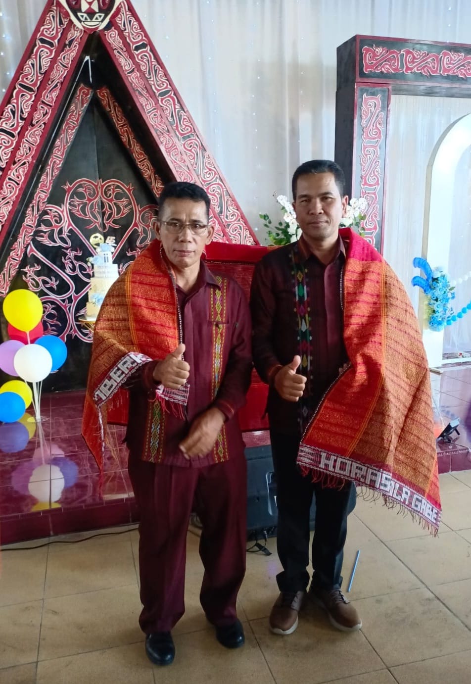 St. Paulus Siahaan dan H Simanjuntak  mewakili anggota DPR RI Komisi XIII, Kombes Pol ( Purn) Dr Maruli Siahaan, SH.MH diulosi  pada pesta ulang tahun ke 45 HKI Resort Khusus Mandala, Minggu (21/9).(ist).