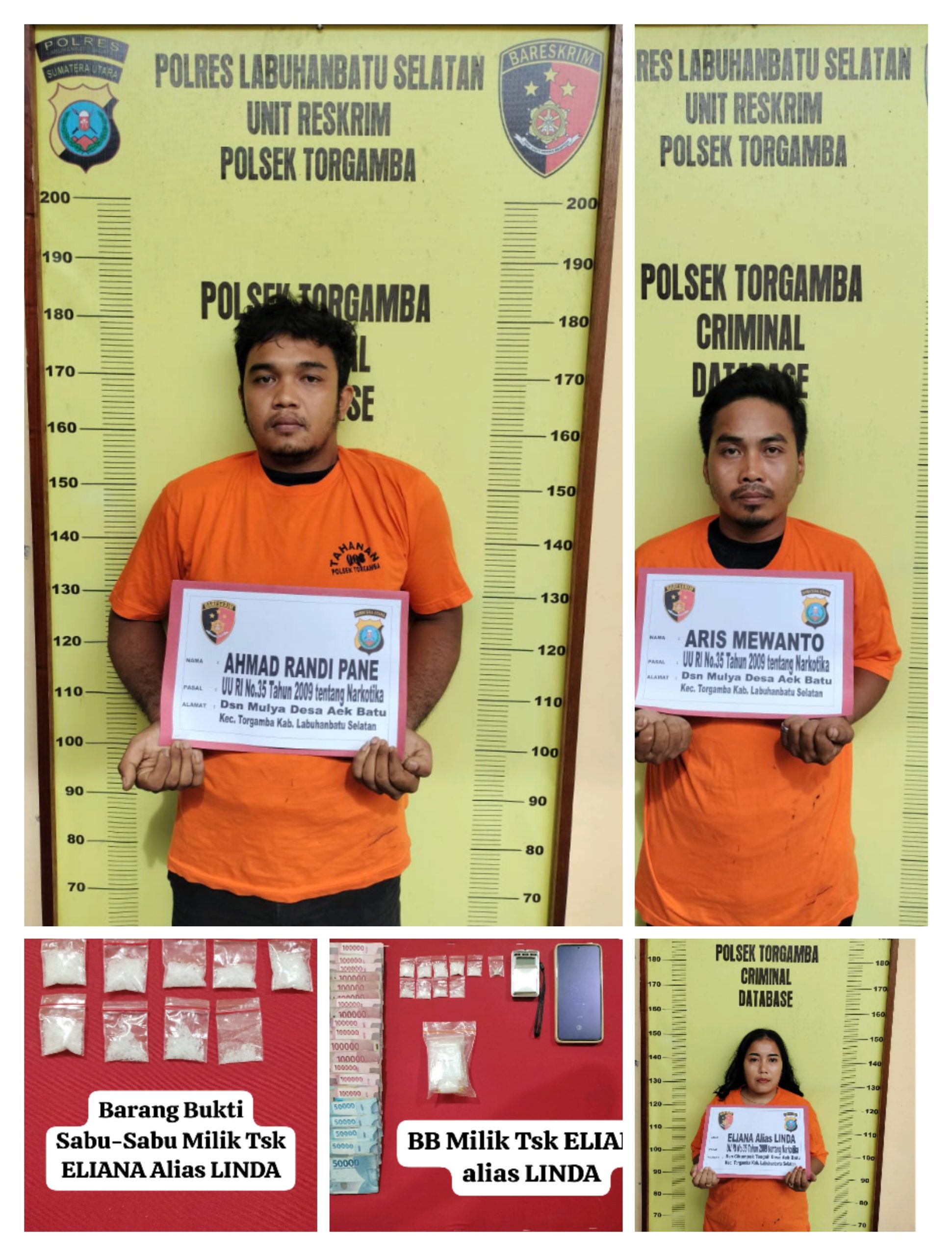 Seorang wanita pemilik rumah, Eliana alias Linda (36), bersama dua pria Aris Mewanto (31) dan Ahmad Rande Pane (24), warga yang sama berhasil diamankan.