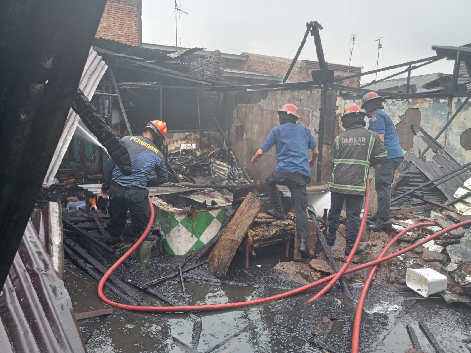 Empat unit mobil pemadam kebakaran Kota Medan tiba di lokasi. Api dapat dipadamkan setelah satu jam petugas berjibaku di lokasi kebakaran.