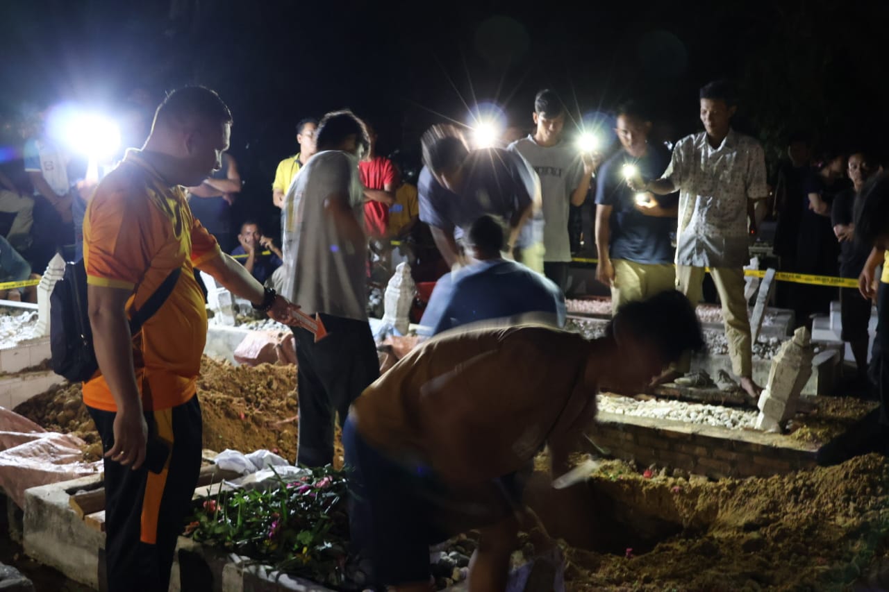 Kepolisian melakukan ekshumasi untuk mengungkap penyebab kematian korban sebenarnya, Minggu (24/8/2025).(ist).