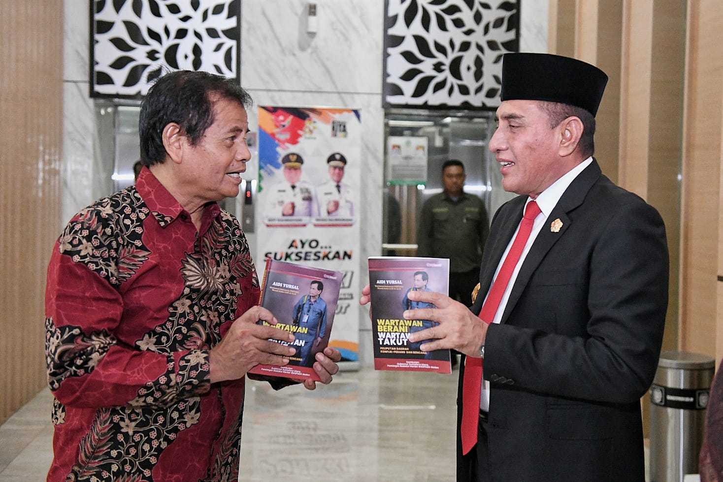 INVOCAVIT.COM, MEDAN – Gubernur Sumatera Utara Edy Rahmayadi menerima buku pengalaman seorang wartawan senior yang berjudul “Wartawan Berani Wartawan Takut, Pada Peliputaan Daerah Konflik-Perang dan Bencana”.