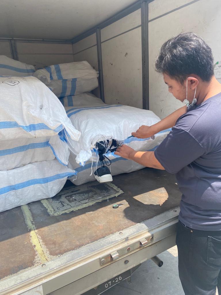 J&T Cargo berada di lokasi Komplek pergudangan intan, Kec. Percut Sei Tuan Kab. Deli Serdang itu ditemukan sepatu bekas yang diduga tidak memiliki dokumen.