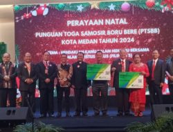 MEDAN, INVOCAVIT.COM – Ribuan keturunan Parsadaan Toga Samosir Boru -Bere (PTSB & B) Kota Medan menghadiri perayaan Natal 2024 di Hotel Tiara Medan, Minggu (8/12).