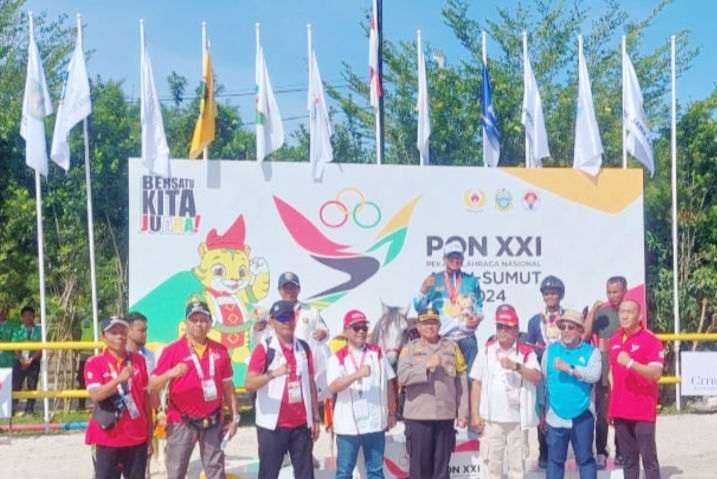 Penyerahan medali pada perlombaan berkuda PON XXI di Kab Sergai (ist).