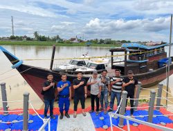 Tim Satgas TPPO Ditreskrimum Poldasu saat mengamankan kapal kayu sebagai barang bukti (Ist).