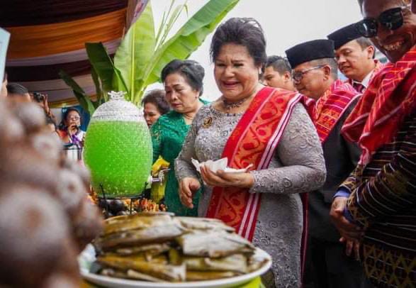 Bupati Karo Cory S Sebayang mengunjungi stand yang menyediakan buah duku produk pertanian Karo (ist)