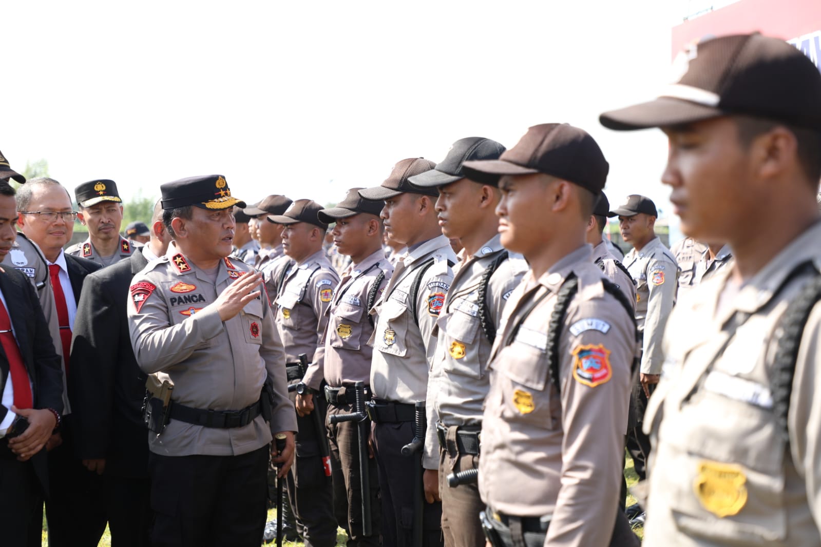 Membacakan amanat Kapolri, Irjen Panca mengatakan, kehadiran Satpam telah banyak membantu tugas personel Polri salah satunya ikut membantu  menangani masalah pandemi Covid-19 dengan menyukseskan program vaksinasi di Sumatera Utara.