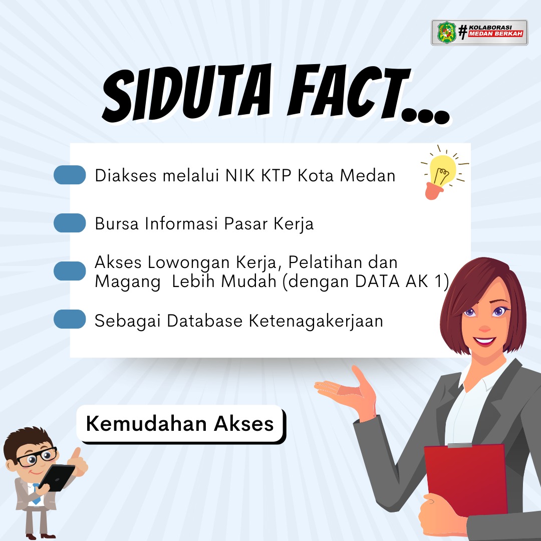 Aplikasi SIDUTA, lanjutnya, merupakan juga membangun link and match antara pencari kerja dan pemberi kerja. Selain itu, imbuhnya, sebagai media untuk akses informasi pasar kerja dan pelatihan yang ada di kota Medan dan memberikan kemudahan pelayanan bagi masyarakat untuk mendapatkan pelayanan ketenagakerjaan di Kota Medan.