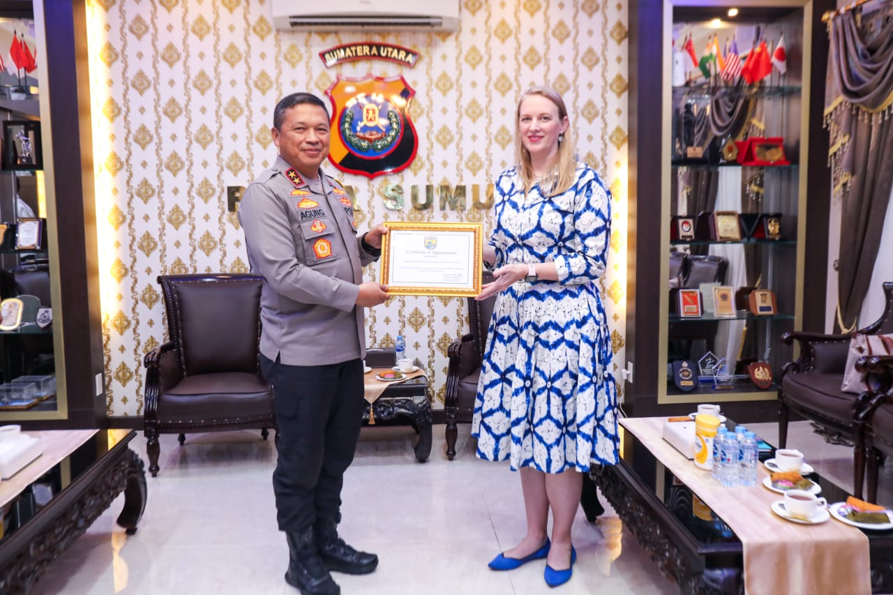MEDAN, INVOCAVIT.COM – Kedutaan Besar (Kedubes) Amerika Serikat berkunjung ke Mapolda Sumut dalam rangka beraudiensi sekaligus memberikan penghargaan kepada Kapolda Sumut, Selasa (24/10).