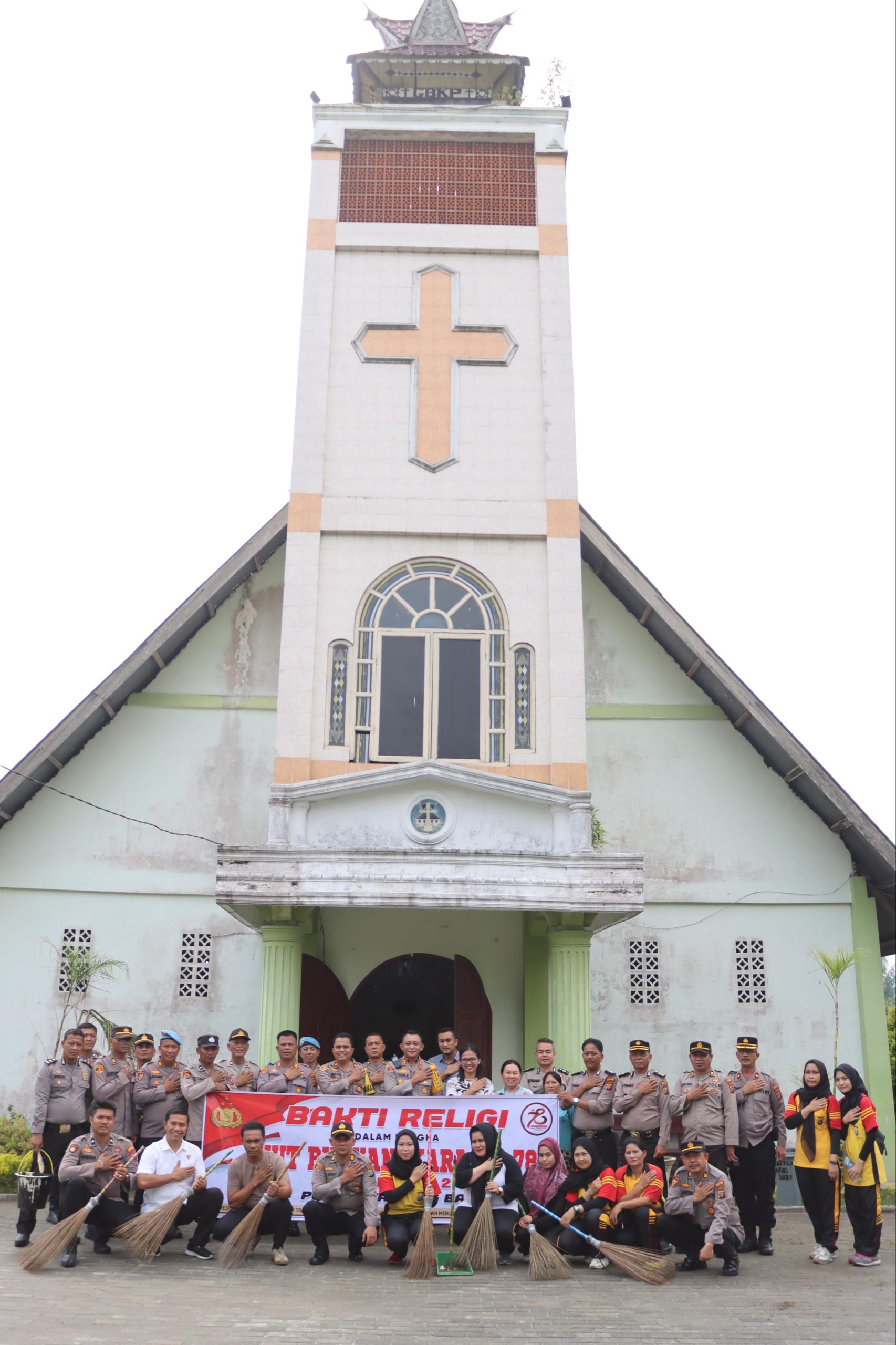 TANJUNGBALAI, INVOCAVIT.COM – Polres Tanjungbalai melaksanakan giat Bakti Religi, kegiatan tersebut dilaksanakan dalam menyambut HUT Bhayangkara Ke-78 Tahun 2024 dengan sasaran enam tempat rumah ibadah.
